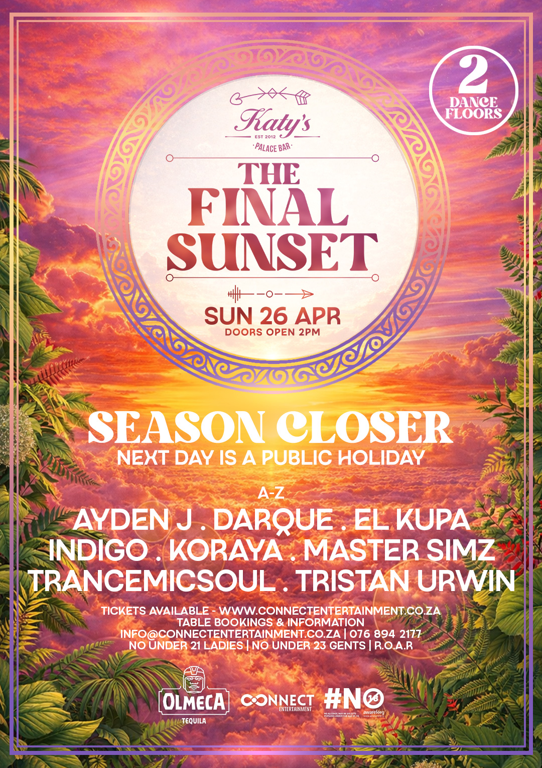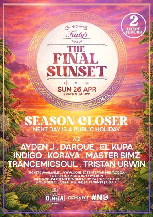 WE GO EXTRA LARGE FOR SUNDAY 26 April (NEXT DAY PUBLIC HOLIDAY), WITH 2 FLOORS, 10 OF SOUTH AFRICAS BIGGEST ARTISTS AND THE MOST BEAUTIFUL SUNSET IN JOHANNESBURG.
