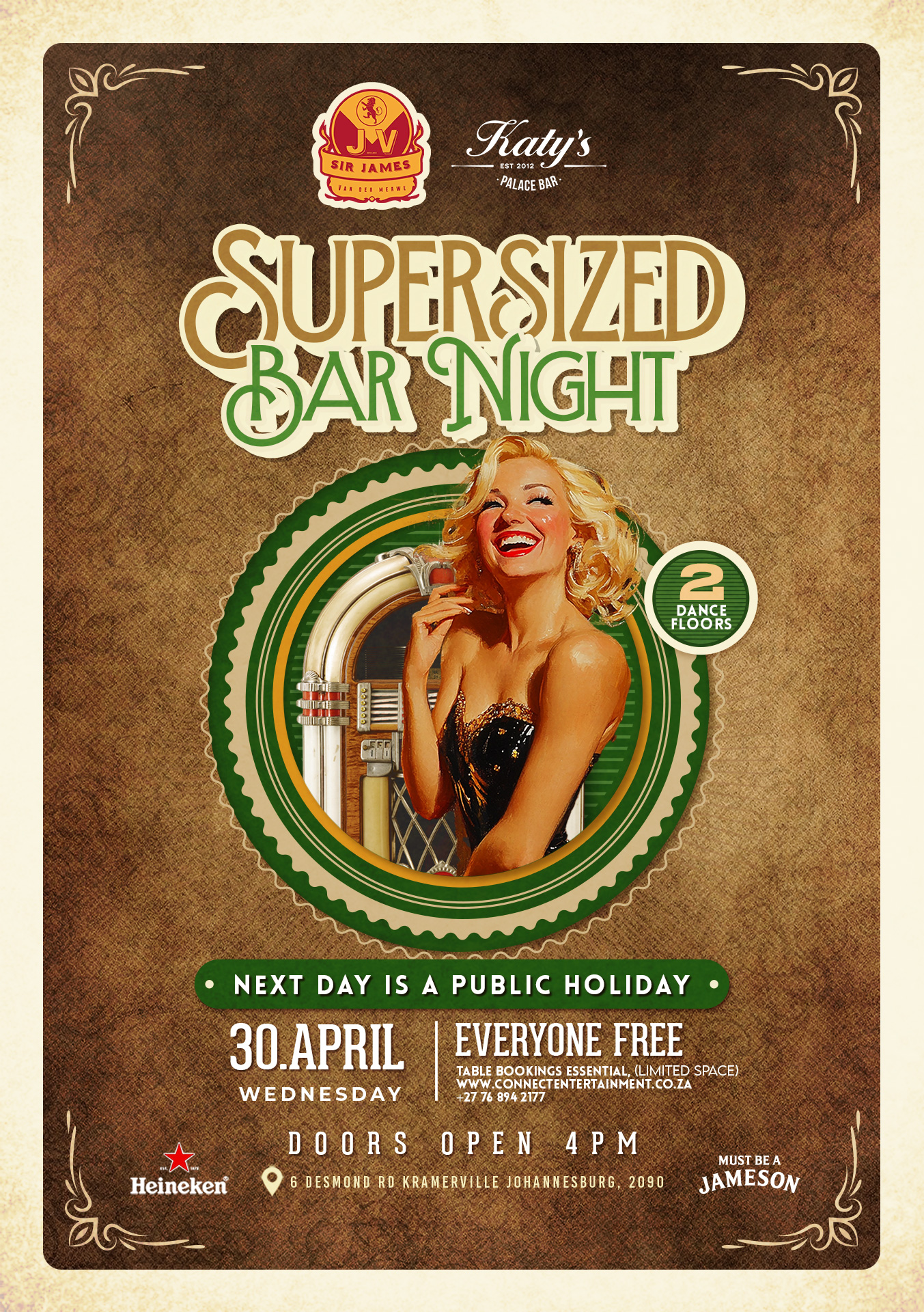 South Africas wildest bar night gets SUPERSIZED on the 30 April (Next day is a Public holiday). Expect aloooooooooot of fun, on the bar dancing, 2 dance floors and aloooooot of tequila shots! ![]()